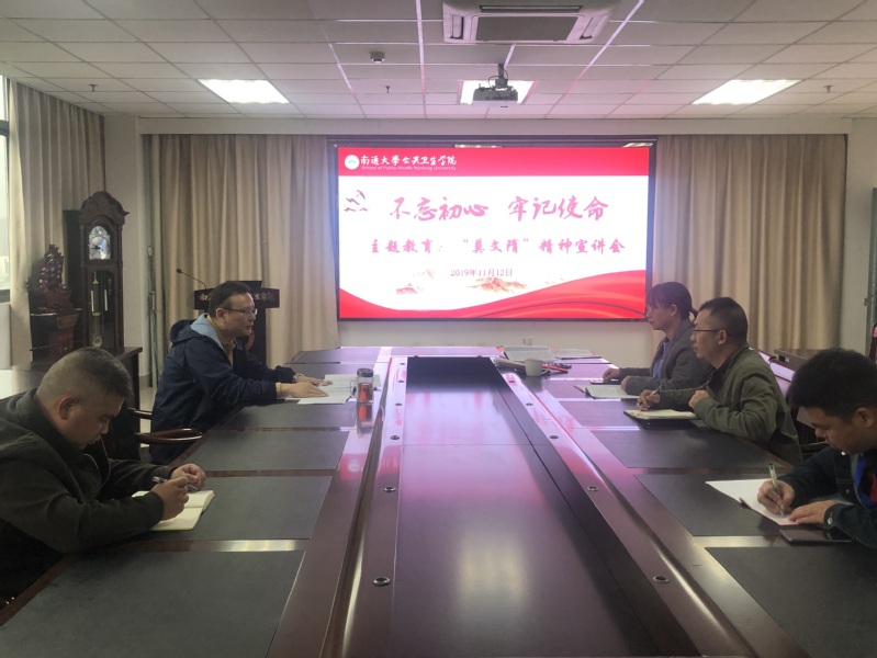 党委书记曹勇提出:一、进一步深入莫文隋精神,把无私奉献的精神、高尚的品质传承发扬光大;二、进一步强化初心与使命意识,将在主题教育活动取得的成效落实落细落小在行动中,将莫文隋精神在每一个环节闪光发亮;三、进一步提升精气神,强化奉献意识与宗旨意识,推动学院实际工作,促进博士点建设和人才引进工作。