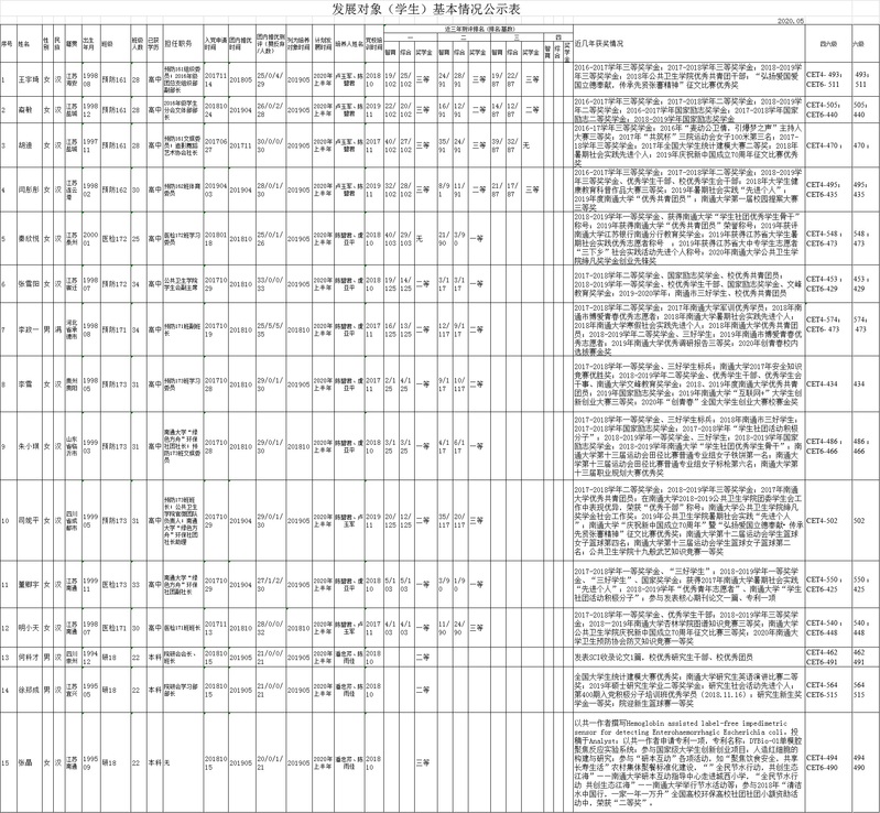 附:发展对象基本情况表