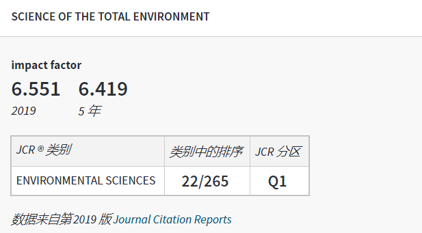 热烈祝贺我院王晓珂、赵新元老师在SCIENCE OF THE TOTAL ENVIRONMENT杂志联合发表中科院