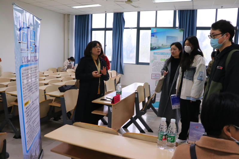 招聘会现场,用人单位和毕业生深入交流,详细介绍单位需求和岗位情况。同时,多家用人单位进行了直播荐岗,以线上展播推荐的方式,生动地将岗位信息呈现给线上参会的同学。本次专场招聘会吸引了上海、南京、扬州、盐城、连云港等地的22家单位来校洽谈,共提供了169个岗位,吸引了包含研究生、本科生在内的200余人现场应聘,近180人向用人单位投递求职材料。