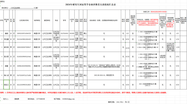 经过学院审核、评选,并经党政联席会议讨论,同意推荐唐曲、吴钰童、顾刘炜、蒋汶君、高慧、陶小波、程钰兰7名同学申报国家奖学金(其中博士生唐曲为候补人选),现予以公示。