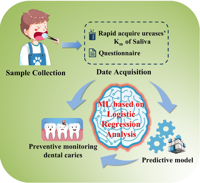 龋齿是全球最普遍的慢性疾病之一,其发生发展受宿主、微生物、饮食等多因素交互影响,传统预防策略面临早期干预难、风险评估滞后等挑战。研究团队突破性地将唾液链球菌代谢标志物——脲酶活性作为龋齿预警指标,设计开发了基于ZIF-8金属有机框架材料修饰的纳米多孔膜检测平台。该技术通过捕捉脲酶催化尿素水解产生的氢氧根离子扩散特征,实现了对酶活性的精准定量分析。基于这种方法分析了287例儿童唾液样本的脲酶米氏常数(Km值),并结合采样时的问卷调查数据,采用逻辑回归分析揭示了酶动力学参数与糖摄入频率的协同作用机制:龋齿发生风险与脲酶活性负相关,与吃糖频率正相关(经常吃糖龋齿风险增加20%)。在此基础上构建的机器学习模型对龋齿预测准确率达到81%。该研究通过建立细菌代谢与行为危险因素的整合评估模型,突破单因素检测局限的同时也为个体化干预策略制定提供量化依据。研究不仅深化了学界对龋齿病理机制的多维认知,也为开发家用型快速检测设备奠定技术基础,也对改善儿童口腔健康管理具有重要公共卫生价值。