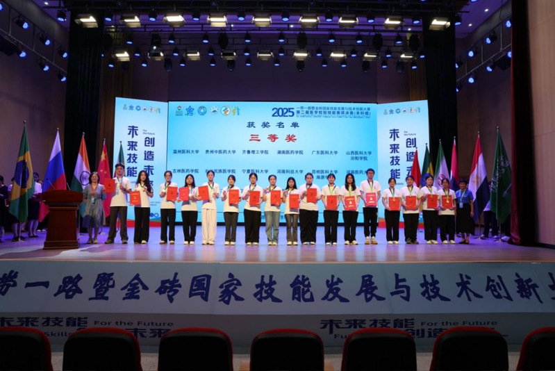2025年8月8日至10日,由教育部主办、九江学院承办的“一带一路”暨金砖国家技能发展与技术创新大赛暨第二届医学检验技能赛项决赛(本科组)圆满落幕。经过两天紧张激烈的角逐,学院2022级医学检验专业学生侯艳霞、王婉婷在全国60所高校120名参赛选手中勇夺三等奖。
