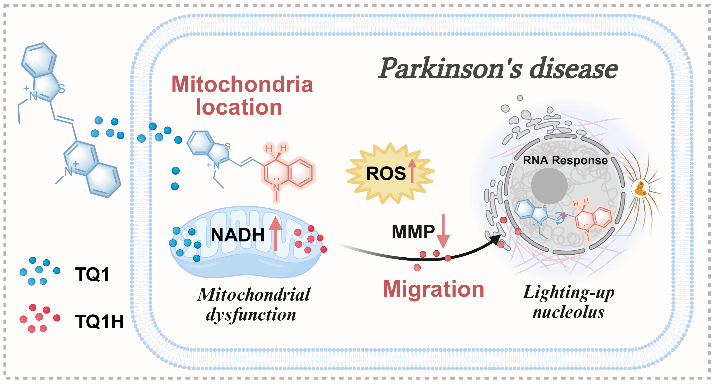 近日,我院先进生物功能材料与医学分析实验室(ABMMAL)在国际知名学术期刊《Chemical Communications》(IF:4.2,Natureindex论文)上发表了题为《A NAD(P)H-driven mitochondria-to-nucleus probe for dual-organelle imaging in dopaminergic toxicity models》的学术论文。该研究成功发明了一种新型荧光探针TQ1,能够特异性靶向线粒体,可实时灵敏检测细胞内关键辅酶NAD(P)H波动(能量代谢标志物),为帕金森病线粒体损伤与能量代谢研究提供可靠的可视化工具。