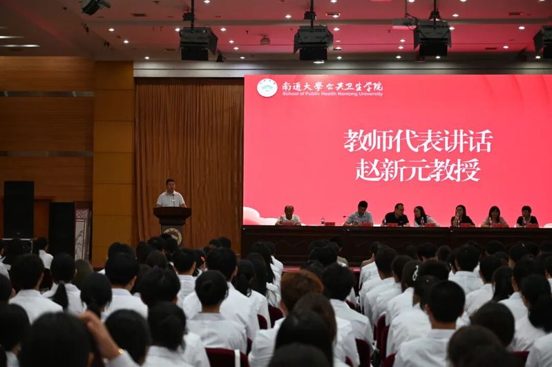 会议在庄严的国歌声中拉开帷幕。学院副院长、博士生导师赵新元教授向各位新同学的到来表示热烈欢迎,并结合自己的教学生涯对新生提出期望:一是聚焦专业优势,守护人民健康,夯实基础、明确定位,勇攀学术高峰,致力前沿突破,共同服务于国家公共卫生事业的重大需求;二是赓续奋斗精神,不负青春韶华,摒弃“躺平”心态,珍惜宝贵时光,将个人奋斗融入时代发展洪流,在拼搏中实现人生价值;三是淬炼健康体魄,迎接全新挑战,保持阳光积极的心态,坚持锻炼身体,做一个热爱生活、身心愉悦的公卫人。