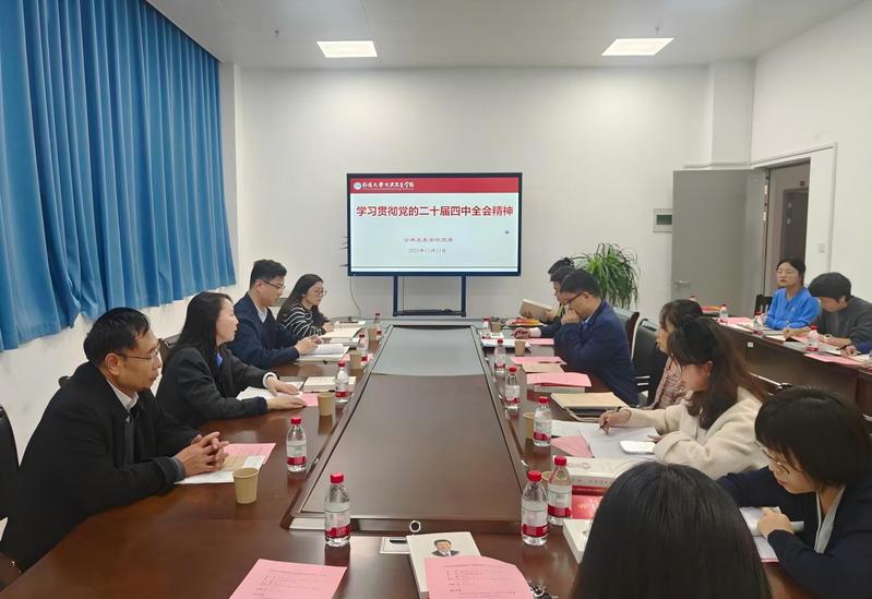 11月13日下午,我院开展党委理论学习中心组(扩大)学习会,深入学习党的二十届四中全会精神,重点研读《中国共产党第二十届中央委员会第四次全体会议公报》。校二级党组织理论学习中心组学习督导员何玉叶列席指导,会议由学院党委书记陈燕主持。