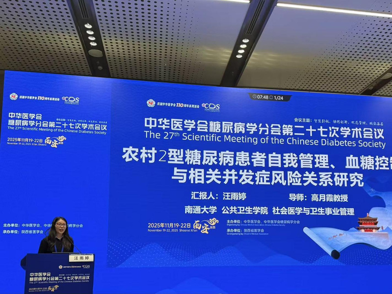 会上,我院高月霞教授团队的2024级研究生汪雨婷的论文《农村2型糖尿病患者自我管理、血糖控制与相关并发症风险关系研究》,成功入选大会分论坛现场汇报。汇报中,汪雨婷同学围绕研究背景、追踪队列的研究设计、科学严谨的研究方法及重要研究成果展开详细阐述,条理清晰、重点突出,充分展现了扎实的科研基础与良好的学术表达能力。