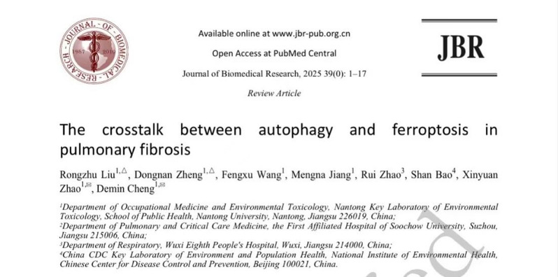 相关成果以“The crosstalk between autophagy and ferroptosis in pulmonary fibrosis”为题,发表在《Journal of Biomedical Research》(南京医科大学校刊)上。