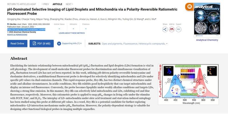 恭喜白庆庆同学、王琦老师文章被Analytical Chemistry (Nature Index)接收为封面文章!