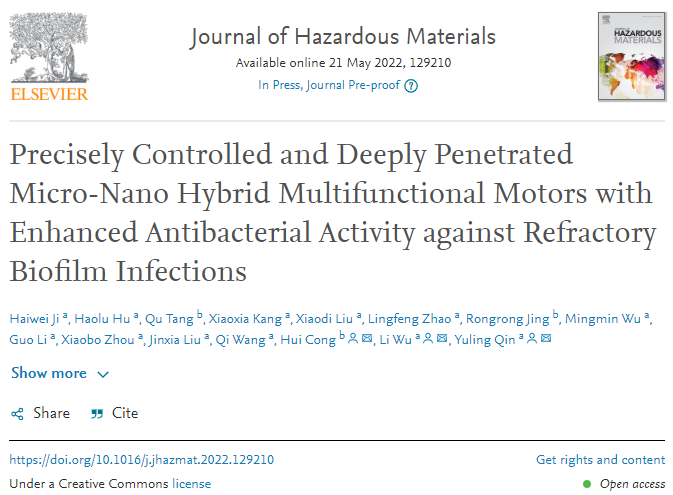 祝贺冀海伟老师文章被Journal of Hazardous Materials杂志接收发表!