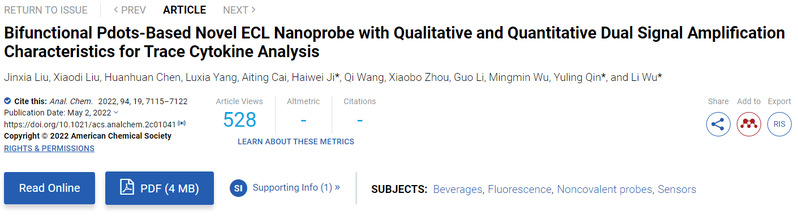 祝贺刘金霞老师文章被Analytical Chemistry杂志接收发表!