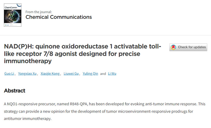 祝贺李国老师文章被Chemical Communications杂志接收发表!