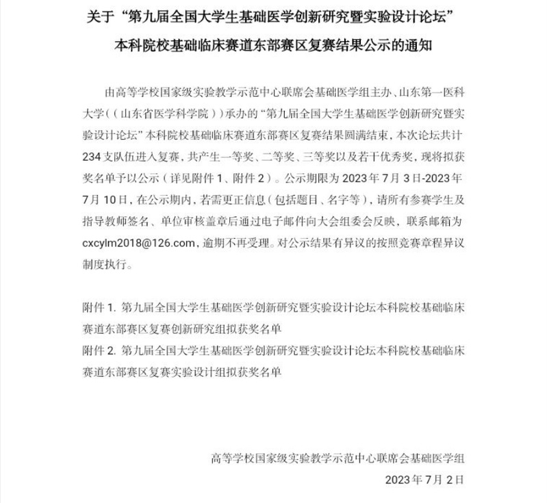 祝贺医学检验系2021级本科生甄亚亚,张愉雪、殷伟毅同学在“第九届全国大学生基础医学创新研究暨实验设计论坛”本科院校基础临床赛道东部赛区复赛荣获得二等奖!