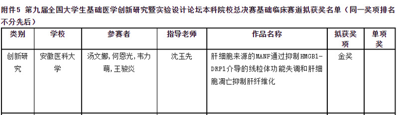 祝贺甄亚亚、张愉雪及殷伟毅同学荣获全国大学生基础医学创新研究暨实验设计论坛“国家金奖”