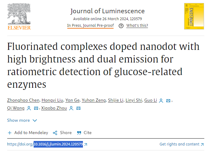 祝贺本科生陈中浩、刘弘仪和葛研同学文章被Journal of Luminescence杂志接收