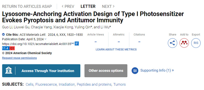 祝贺顾刘炜同学文章被ACS Materials Letters杂志接收