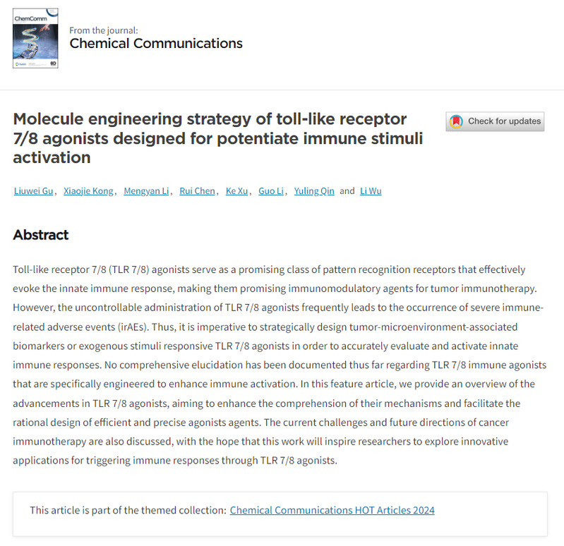 祝贺顾刘炜同学文章被Chemical Communications杂志接收